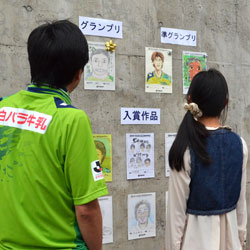 以前にJ2日記でも紹介した、ガイナーレ鳥取選手似顔絵コンテスト。とてもよく似ているもの、コミカルなものなど、たくさんの応募作の中からグランプリや準グランプリが決まり、6月1日の松本戦の試合会場で発表された。