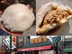 朝飯代わりの小籠包を味わったら、やはり、中華街に来たからにはブタまんが食べたい。あちこちの店先で売られている中から、どれを選ぼうか、再び中華街を練り歩く。そして選んだのは創業明治27年の「江戸清」( http://www.edosei.com/ )のブタまん。最大の特徴は、その大きさにある。それは大人の男性の掌にも余るほど。中の餡も期待通りにみっちりと詰まっている。大きな口を開けてかぶりつけば、肉汁が口の中いっぱいに広がる。甘味のある皮と、ぎっしり詰まった餡が混然一体となって織りなす味は、もう何も言うことはない。1つ500円だが、納得の味とボリュームだ。