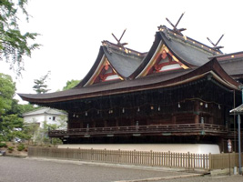雄大な姿の本殿。拝殿とともに国宝に指定されている。
