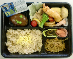 「好きな物は、きんぴらごぼうにブロッコリー。けれど、これではあまりに地味だと、奥さんが一緒にメニューを考えてくれました。福岡は美味しいものが一杯。鶏ごぼう御飯に辛子高菜、鶏肉など、福岡自慢の一品も盛り込んでみました」。