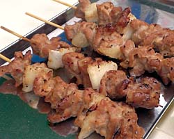 「諫早ホルモンの串焼き」。あっさりした塩味が美味