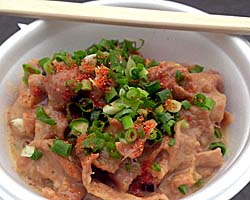 こちらは「諫早ホルモンの煮込み」。じっくり煮込んだ濃厚な味が決め手だ