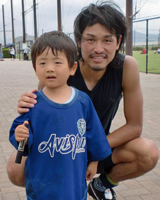 福岡が誇るエース・城後と記念撮影。「僕も将来はアビスパのエースだよ」