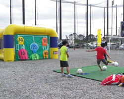 ジェフ☆アトラクションパークのキックターゲットにはサッカーの経験者はもちろん未経験者も楽しく参加。サッカー好きの少年は鋭いキックを見せていた。