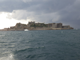 腹も満たしたところで、この旅のメインディッシュである、『軍艦島(端島)』へ向かう。軍艦島とは、かの「島は宝島だった――」のCMでお馴染みの、かつて海底炭鉱によって大いに栄えた島である。良質の石炭が採れ、日本の近代化を長らく支えてきた。最盛期の1960年には5,267名の人口がおり、その密度は東京の9倍もあったという。学校ができて、近代的なアパートが建った。周囲は埋め立てにより3倍の広さに拡張され、病院・お寺・映画館・スナックも。しかし――エネルギー革命により石炭から石油への移行が進み、1974年についに閉山。以降は無人島と化している。2001年、高島町(当時)に無償譲渡され、現在は市町村合併により長崎市が管理している。建物は老朽化しており、高層アパートももはや倒壊は時間の問題。荒廃の進む中、観光資源として2009年から整備された見学通路の部分だけ上陸が可能となった。現在は各旅行会社や海運会社が上陸ツアーを行っており、昼食をいただいた洋食店から歩いて数分の場所にある長崎港から出港している。ご希望の方はインターネットで「軍艦島 ツアー」で検索すれば、幾つもの会社のサイトにヒットするはずだ。ひとつ心配だったのは天候不順で波が高い日などは上陸ができないこと。この日の午前中は「ギリギリ上陸できた」とのことで、これは運を天に任せるしかない。片道30分ほどだが、波の強い日は船酔いには注意されたい。
