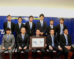 今、後ろに新たなメンバーが9人座っています。新加入選手も既存の選手と同じ悔しい気持ちで戦ってくれるはずです。サポーターのため、大分県民のために戦ってくれると確信しています。本日から2013年のリベンジに向けて、大分トリニータの未来に向けて新たな挑戦をしたいと思います。