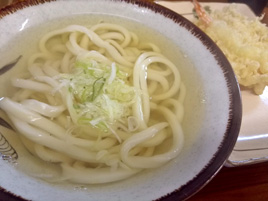 明けて23日。レンタカーを借りることも考えたが、脳内で費用対効果を分析した結果、鉄道を利用してのうどん店巡り。1軒目は琴平鉄道林道駅から徒歩30秒の「やまと製麺所」。オムたまうどんや氷山うどん(夏季限定)など趣向をこらしたメニューで、テレビ番組などにも登場する評判店。カウンターが10席ほどの店内に多くのサインが展示されていた。ここはあえてシンプルにかけうどんとUFOえび天をチョイス。UFOえび天とは衣を円形に整えて揚げたえび天で、いりこベースのつゆに浮かべていただいた。うどんももちろんもっちりとしていておいしかったが、このえび天がまた美味。さっくりとして、油っぽさを感じない。改めて感じたことは、讃岐のうどん店は質量ともにサイドメニューが充実している。