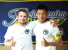 群馬のポルトガル語通訳フェリペとMF黄誠秀(ファン・ソンス)がデザイン・監修したチャリティグッズが5月31日のホーム横浜FC戦から限定販売される。2人のアイデアによって誕生した商品は、「キャプテンマーク」と「Tシャツ」。ブラジルのある南アメリカ大陸をイメージしたロゴにはポルトガル語で「BOA SORTE(ボア ソルチ)」と書かれている。