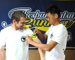 黄誠秀、フェリペ通訳によって開発されたチャリティグッズ「Tシャツ」と「キャプテンマーク」
