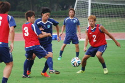 荒堀選手は元々、このチームの選手でした。2年前ですかね。我々が大きくリスペクトしている、湘南のカウンターのサッカーをしながら、攻守のアップダウンをしながら、スピードもあるし、技術もあるので“阪倉サッカー”の中で生きると。例えば、サイドバックの赤井(秀行)選手が右をやっているけど、中(センターバック)もできると。今日の練習を見てもらえば分かるように、センターバックは4人います。ドゥドゥ選手が抜けましたが、そこでサイドバックもサイドハーフもできる、3バックの右もできる荒堀選手を獲得しました。