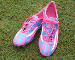 さて、今節はホーム連戦ということで気合を入れて練習場に顔を出すと、ひときわカラフルな足下を発見。山瀬功治選手と伊藤優汰選手のスパイクがピンクを基調にしたデザインで、何とも華やか。スパイクの色は本当に多彩になりました。20年くらい前なんて、黒一色でした。たまに、メーカーのマーク以外の部分で白なんかをあしらったものもありましたが、ごく一部。ヤスダのカンガルー革でブルーとかもあったようですが、全然別世界だよっ、という感じ。それが今や、こんな色彩で、技術の進歩はすごいもんです。