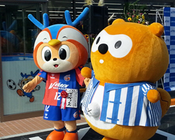 オープンセレモニーには大人気のクラブマスコットヴィヴィくんも来店。ローソンのポイントカードpontaのマスコットキャラクター・ポンタくんと8月31日のローソンデーに続いて対面した。この日のヴィヴィくんはポンタくんとは2回目の対面という事もあり、積極的にアプローチ。どうやらヴィヴィくんが気になっていたのはポンタくんの「おへそ」のようだ。セレモニー中こそ、来賓席にちょこんと腰掛けていたが、式の前後はしきりにポンタくんに近づいてはおへそをさすっていた。
