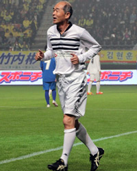 古河電工サッカー部時代から長年、守護神として活躍した下川健一氏。OBマッチが終わって寛いだ表情を浮かべた