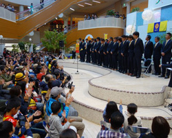報告会が開かれた会場は「I’m」ビル10階にある吹き抜けのナチュガーデン。ステージ前や上層階には約450人(北九州発表)が訪れました。実はこの場所、北九州のJリーグ入会初年の2010年に壮行会が開かれた場所。当時に比べても訪れるサポーターの数が増え、着実なファン層の拡大も実感できました。