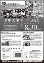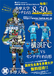 明日、8月30日(土)に行なわれます「多摩大学マッチDAY」J2第33節(18:00K/O)横浜FCvs.モンテディオ山形戦に横浜FCオフィシャルクラブスポンサーである多摩大学が高校生を無料招待いたします!
