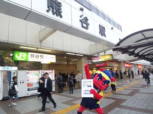 ザスパ草津では、9325(草津GO!)プロジェクトの告知活動の一環として、10月25日(土)熊谷開催試合告知活動を10月23日(木)に、熊谷駅北口と南口にて行いました!写真は元気にビラを配る湯友くん。是非皆様のご来場をお待ちしております!