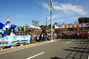 マラソン大会各部門のスターターや表彰を行ったり、参加者の皆さんと一緒にマラソンしたり、サッカー・ラグビーフェスティバル等のイベントに参加します。