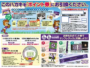 11月17日(月)に、サンフレッチェクラブ会員の方々に最新のお手持ちポイントを記載した「ポイント引換ハガキ」をお送りいたします。このハガキを引換場所にお持ちいただき、ポイント券にお引換えください。