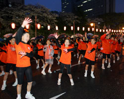 エスパルスオフィシャルチアリーダーのオレンジウェーブが4月4日(土)、静岡まつりの「夜桜乱舞」総踊りに参加しました。