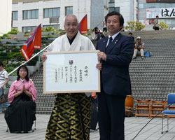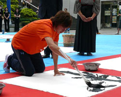 一覧へ「墨の魔術師金田石城 大宮アルディージャ大使就任記念 野外大書フェスティバル」開催レポート(09.05.13)