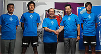 梅本徹代表取締役社長、今井浩志専務取締役、中村太亮選手、金成勇選手