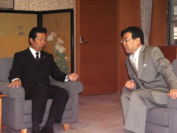 山田知事より任命状、オレンジリボンキャンペーンフラッグが贈呈され、その後は知事と児童福祉に対する取組みについて意見交換が交わされました。