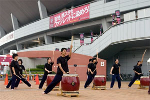 開場前/スタジアム前広場:岡山学芸館高校和太鼓部演奏