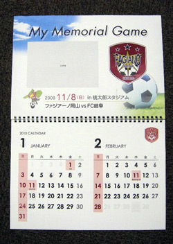11月8日FC岐阜戦では岡山県製本工業組合の協力のもと、“11月第2土曜日は製本の日“にちなみその場で撮影した写真で作成する2010オリジナルカレンダー(先着500名)やお子さま向けにポップコーンや風船、メモ帳のプレゼントを行います。