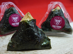 かりっと揚げたギョウザを丸々おむすびに入れました。
