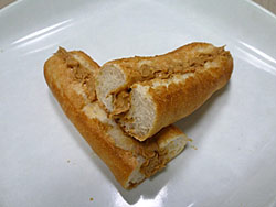 千葉の特産品といえば落花生!ちょっと長めのフランスパンにピーナッツバターをサンドしました!