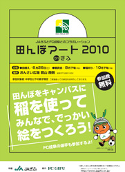標記の件につきまして、オフィシャルスポンサーであるJAぎふとFC岐阜がコラボレーションして、『田んぼアート2010onぎふ』を開催いたします。この田植えに参加して頂ける方を先着100組募集しています。当日は、FC岐阜の全選手が参加して、田植えを一緒に行います。お申込みは、下記の申込み用紙をFAXにてお送りください。締切は6月18日(金)。多数のご参加をお待ちしております!