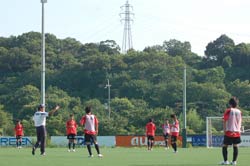 出発前、川勝監督のもと、城陽で練習に励む選手たち。