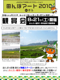 6月に田植えを行った田んぼアートの鑑賞会を8月21日(土)に岐阜市おんさい広場にて開催いたします。鑑賞会と合わせて、「おんさい夏祭り・青年部祭り」も同時開催予定です。こちらのイベントにも選手が参加いたしますので、夏祭りを思いっきり楽しんで