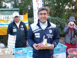 練習後、アフシン ゴトビ監督に三保農家婦人部有志の方より、トマトとトマトジャムがプレゼントされ、「トマトはカラダにいいからね!」と、たいへん喜んでいました。