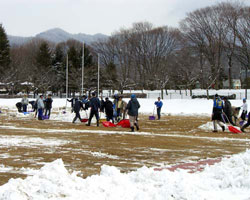 ・極力、芝を傷めないようプラスティック等の除雪用具をご持参下さい。