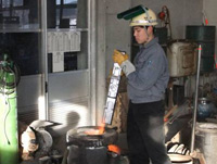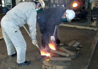 (3)銅版の製作:1,100℃を超える高温の青銅を溶かします。