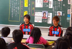 ◆クラブ創設15周年を迎えた今シーズン、設立時の原点に帰る意味でも、これまで以上に選手が地元の子どもたちを中心に交流を持つホームタウン活動に力を入れようと『C-Smile北海道プロジェクト』を立ち上げました。今季これまで、その一環として札幌市内の入学式への選手の出席や、小学生チームを対象としたサッカー大会「コンサドーレスマイルリーグ2011」の実施などを行っておりますが、この度、このプロジェクトのメイン事業となります選手による学校訪問の1回目を実施いたしました。