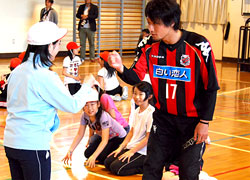 ・体育館にて簡単なデモンストレーションとボールを使ったゲームで交流