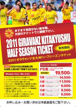 このたびギラヴァンツ北九州では、2011シーズンのハーフシーズンチケットを販売することとなりましたのでお知らせ致します。