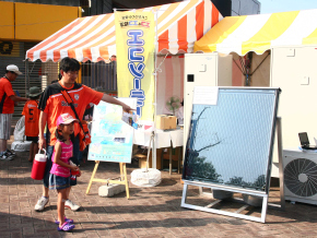 “空気の熱”と”太陽熱”、2つ再生可能エネルギーをベストミックスした「エコキュート・ソーラーヒート」の展示(@矢崎総業ブース)