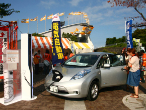 最新エコカーの電気自動車「日産リーフ」の展示(@矢崎総業ブース)