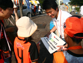 マッチスポンサー矢崎総業(株)様から先着2,000名様に「エコうちわ」がプレゼントされた。