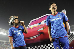 ハーフタイムのピッチには、ディズニー映画「カーズ2」でメーター役の吹き替えを担当しているグッさんこと山口智充さんが登場!