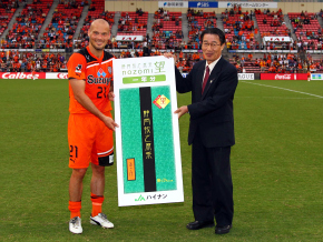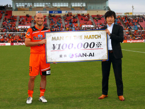 マン・オブ・ザ・マッチに輝いたユングベリ選手には、マッチスポンサーの(株)山愛様より賞金100,000円が贈られました。