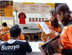 エスパルス公式ケータイサイトのスマートフォン向けサービス開始に伴うキャンペーンブース。ユングベリ選手サイン入りスパイク等が当たる抽選会は大盛況!