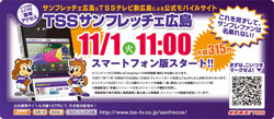 サンフレッチェ広島では、11月1日(火)より「TSSサンフレッチェ広島」公式スマートフォンサイトをオープンいたしますので、お知らせいたします。