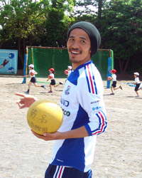 子どもたちを相手にボールまわしを行い、プロサッカー選手のテクニックに子どもたちからは大歓声が沸いていました。