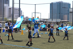 F!リーダーズの演技にフリ丸も登場!誰でもボールに親しめるサッカーパークと、ミニクリニックを実施しました。