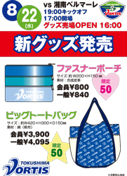 このたび、弊クラブでは、8月22日 vs湘南ベルマーレより、新グッズ「ファスナーポーチ」、「ビッグトートバッグ」をホームゲーム会場グッズ売り場にて販売することとなりました。