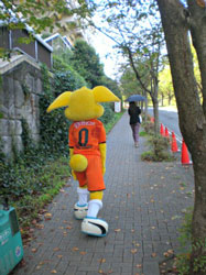 スタジアムを左手に、最後の上り坂を、頑張って歩きます。